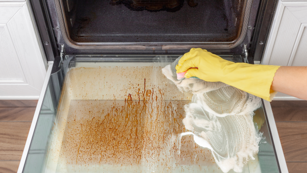 Zalewam wodą i wstawiam do brudnego piekarnika. Domowy trik sprawia, że czyści się sam