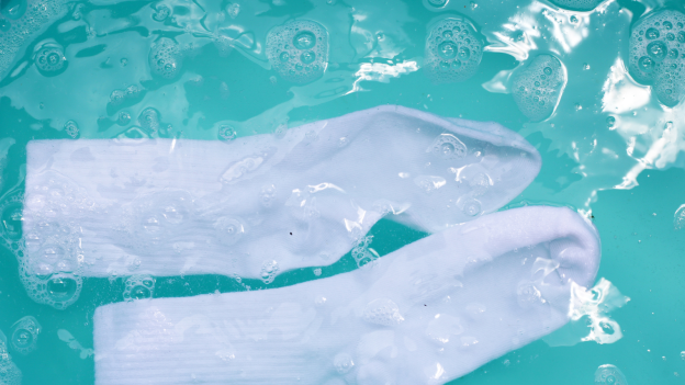 Mieszam 2 składniki i namaczam brudne skarpetki. Wreszcie są śnieżnobiałe jak za nowości