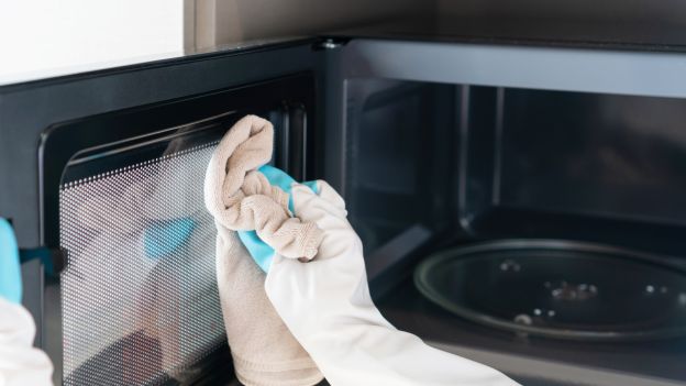 Wlewam pół szklanki do miski z wodą i wkładam do mikrofali. Po 5 minutach lśni jak nowa