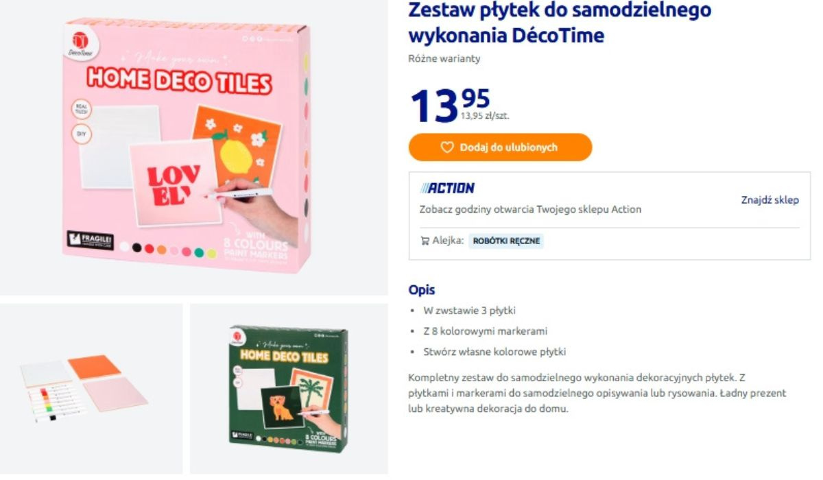 Płytki DIY z Action za 13,95 zł to jedna z tych rzeczy, które od razu przyciągają uwagę. W zestawie znajdują się trzy sztuki oraz komplet kolorowych markerów, dzięki którym można stworzyć własne wzory.