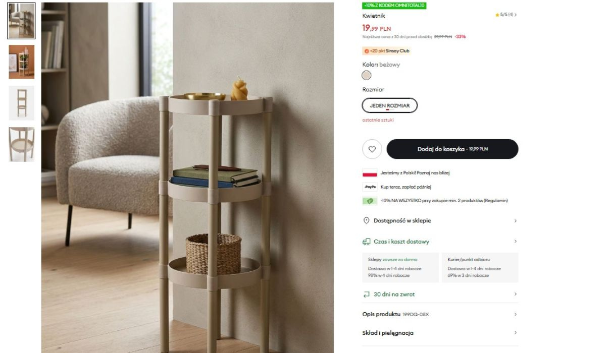 Sinsay wyprzedaje modny kwietnik w kolorze latte za 19,99 zł. Trzy poziomy rozwiązują problem miejsca na balkonie