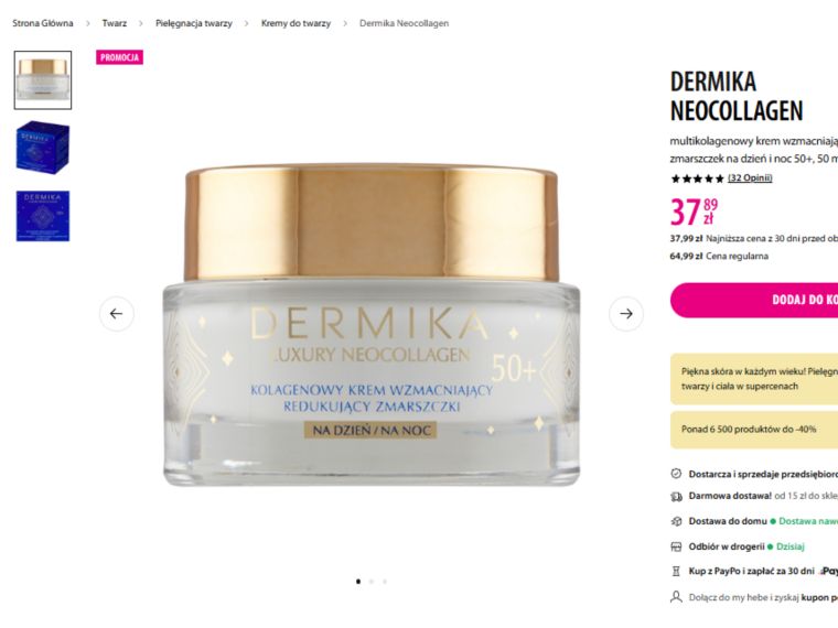 Najlepsze jest jednak to, że ten krem z Hebe kosztuje teraz tylko 37,89 zł zamiast 64,99 zł. To prawie 40% taniej, a w tej cenie trudno znaleźć równie zaawansowany krem przeciwzmarszczkowy. To właśnie dlatego tak wiele osób po niego sięga. Łączy skuteczność, skład i cenę, która nie odstrasza. Jeśli szuka się produktu, który naprawdę poprawia kondycję skóry i daje efekt napięcia bez inwestowania w drogie kosmetyki, ten krem jest jednym z najmocniejszych kandydatów. Co ważne, sprawdza się zarówno jako element codziennej rutyny, jak i szybkie wsparcie, gdy skóra potrzebuje widocznego „liftingu” bez zabiegów.