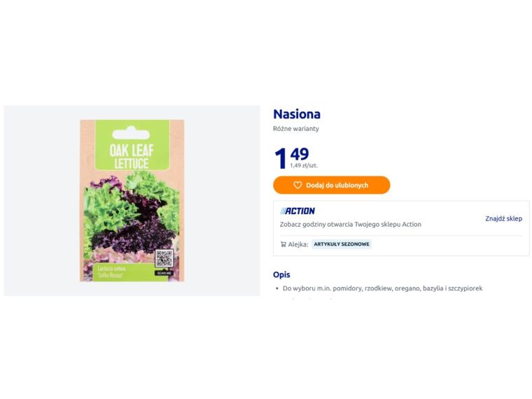 Największą uwagę przyciąga cena. W Action paczuszki z nasionami kosztują zaledwie 1,49 zł za sztukę, co na tle konkurencji wypada wyjątkowo atrakcyjnie. W większości sklepów ogrodniczych podobne produkty to wydatek rzędu 2,99–4,99 zł, a w przypadku bardziej popularnych odmian nawet więcej.