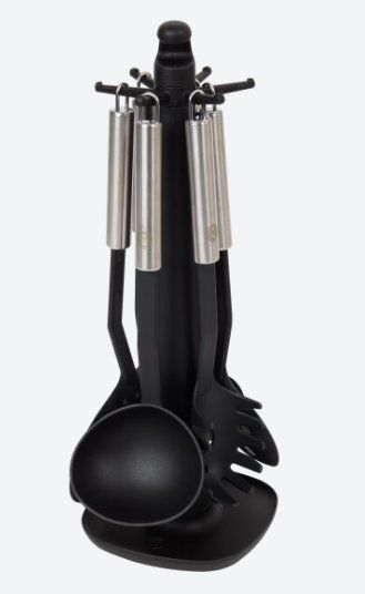 To dzięki niemu nie musisz przeszukiwać szuflad w trakcie smażenia czy gotowania. Wystarczy twój jeden ruch ręką, żeby obrócić stojak i zdjąć potrzebny ci element raz dwa. Pomaga to zachować porządek w kuchni, zapobiega zarysowaniom przyborów w ciasnych szufladach i przede wszystkim,