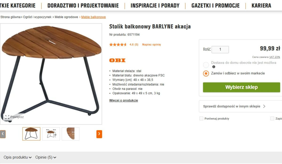 Ten stolik na balkon z Obi od razu wyróżnia się na tle innych. Ma kompaktowe wymiary 48 x 48 x 38,5 cm, dzięki czemu idealnie wpisuje się w małe przestrzenie. Nie zajmuje dużo miejsca, ale jednocześnie daje pełną funkcjonalność.
