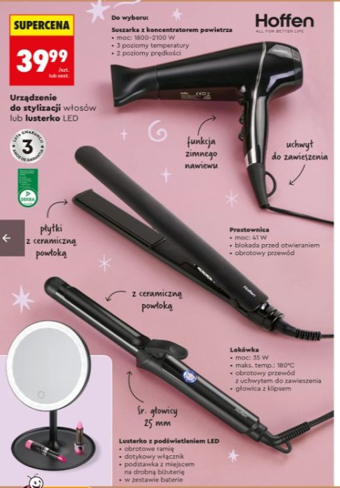 Jeśli planowałyście wymianę sprzętu do stylizacji włosów albo po prostu chcecie mieć coś „na zapas”, ta oferta może was naprawdę zainteresować. W najnowszej gazetce Biedronki pojawiły się aż trzy urządzenia do włosów i każde z nich kosztuje dokładnie tyle samo – 39,99 zł.