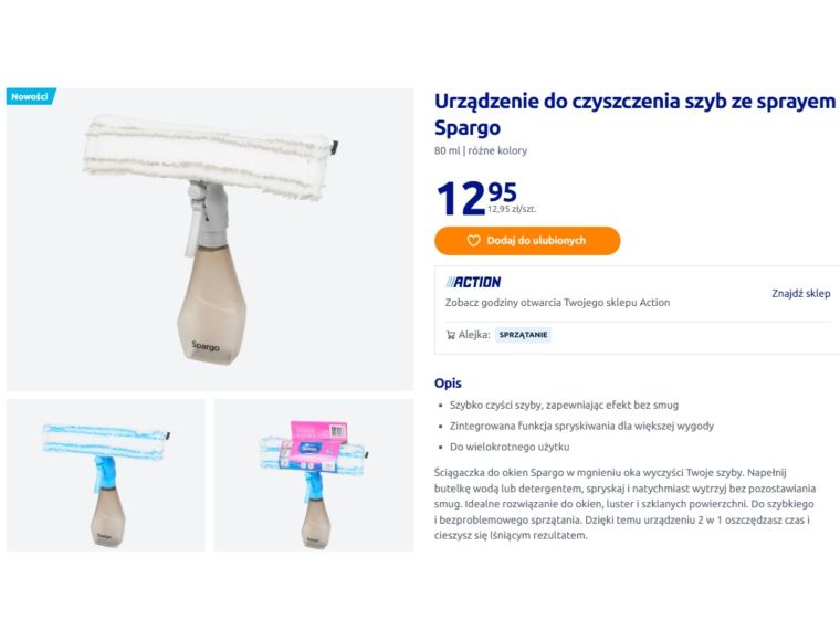 Nowość dostępna w sklepach Action może okazać się małym przełomem w codziennych porządkach. Myjka do okien z wbudowanym pojemnikiem na wodę i sprayem kosztuje zaledwie 12,95 zł, a łączy w sobie funkcję spryskiwacza i ściągaczki. Prosto, wygodnie i bez zbędnego bałaganu.
