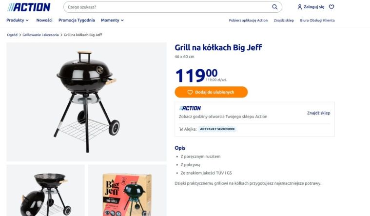 W ofercie pojawił się grill z Action, który szybko przyciąga uwagę ceną, ale też konkretnym wyposażeniem. Model Big Jeff to klasyczny grill na kółkach o wymiarach 46 x 60 cm, utrzymany w czarnej, uniwersalnej kolorystyce i okrągłym kształcie. Wyposażono go w pokrywę z uchwytem, wbudowany termometr oraz regulowany dopływ powietrza, co daje większą kontrolę nad temperaturą podczas grillowania. Na plus działa też wyjmowana szuflada na popiół i zdejmowana kratka, które ułatwiają czyszczenie i codzienne użytkowanie.