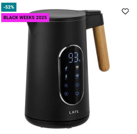 Czajnik elektryczny LAFE KettleX Pro dostępny w promocji Biedronki to nowoczesne urządzenie o pojemności 1,7 l i o zaawansowanych funkcjach, które znacząco ułatwia codzienne przygotowywanie napojów i nie tylko. Sprzęt został wyposażony w specjalny panel sterujący, dzięki któremu można podgrzać wodę na 4 różne sposoby: