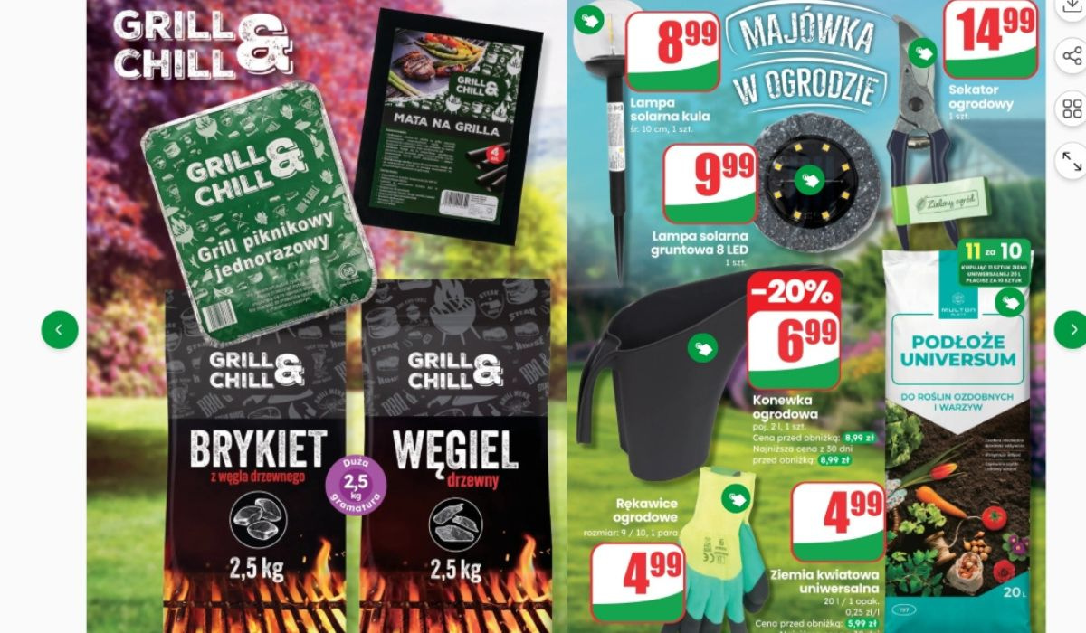 Nie zabrakło też rzeczy do ogrodu. Lampa solarna kula kosztuje 8,99 zł. Konewka ogrodowa dostępna jest za 6,99 zł, rękawice ogrodowe za 4,99 zł, a ziemia uniwersalna do roślin kosztuje około 4,99 zł za opakowanie. Najbardziej podoba mi się to, że wszystko jest przemyślane. Można kupić jedzenie, dodatki i rzeczy do ogrodu w jednym miejscu i nie przepłacić. Przy takich cenach naprawdę opłaca się zrobić większe zakupy i mieć spokój na całą majówkę.