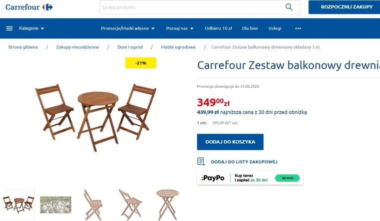 Akacjowe meble na balkon w promocyjnej cenie. Carrefour zaskoczył wszystkich
