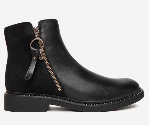 Botki dostępne są w 2 wersjach kolorystycznych, klasycznej czerni oraz głębokim bordowym odcieniu. Rozmiarówka obejmuje zakres od 36 do 41, więc bez problemu można dopasować odpowiedni wariant. Model zapinany jest na suwak, co ułatwia codzienne zakładanie i zdejmowanie butów. To fason o wąskiej szerokości buta, dlatego najlepiej sprawdzi się u osób o smuklejszej stopie. Grubość podeszwy wynosi 2 cm, wysokość obcasa 3 cm, a całkowita 17 cm.