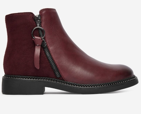 Skórzane botki w czerni to klasyka, którą bez trudu zestawiam z prostymi jeansami i wełnianym płaszczem. Niski obcas o wysokości 3 cm zapewnia stabilność, dlatego można je nosić przez wiele godzin bez uczucia dyskomfortu. Bordowy wariant to ciekawa alternatywa dla klasycznej czerni.