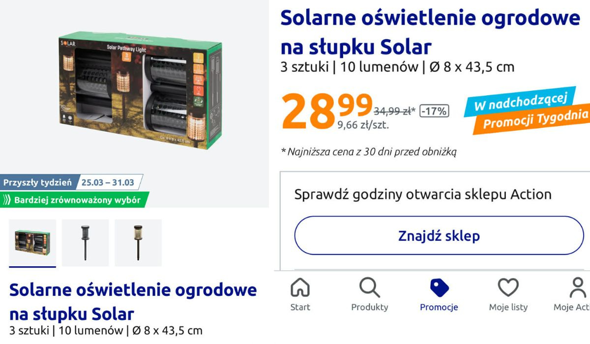 Najlepsze w całej tej ofercie jest to, że zestaw solarny z Action kosztuje na promocji tylko 28,99 zł, co daje jedynie 9,66 zł za sztukę. Jak na urządzenie o tak solidnym wykonaniu to naprawdę korzystna cena.