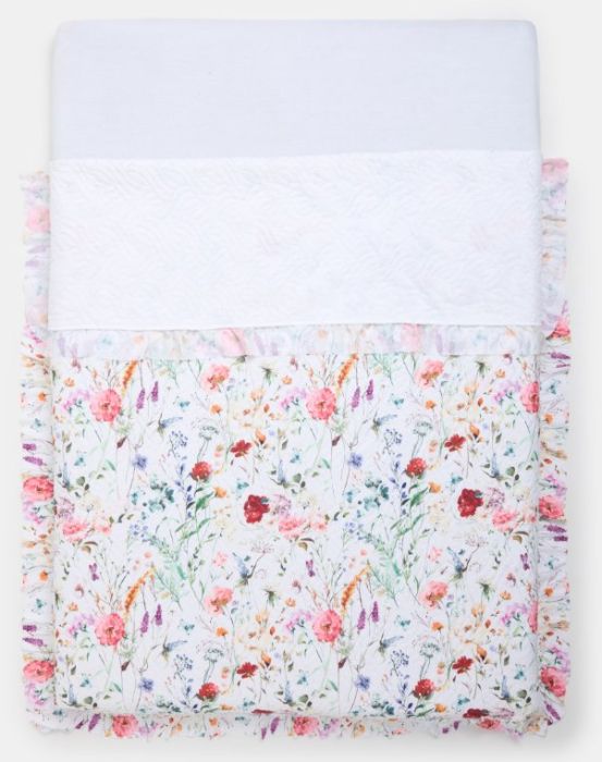Do sypialni możecie dobrać narzutę na łóżko w kwiaty obszytą falbanką, w cenie 69,99 zł.