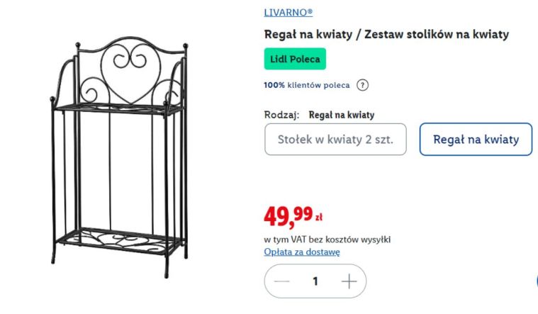 Wymiary 64,7 x 35,5 x 19,5 cm sprawiają, że bez problemu zmieści się nawet na wąskim balkonie, a dwa poziomy pozwalają efektownie wyeksponować kilka roślin. Maksymalne obciążenie 5 kg na półkę wystarczy na donice z kwiatami, ziołami czy drobnymi dekoracjami. Dodatkowym atutem są nakładki ochronne na nóżki, które chronią podłoże przed zarysowaniami. Największe zaskoczenie? Cena – tylko 49,99 zł, która przy takim wyglądzie wydaje się wręcz symboliczna.
