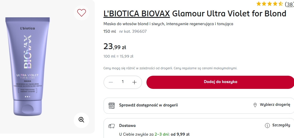 Maska do włosów L'BIOTICA BIOVAX Glamour Ultra Violet for Blond hitem dla blondynek. Rossmann ma po 23,99 zł