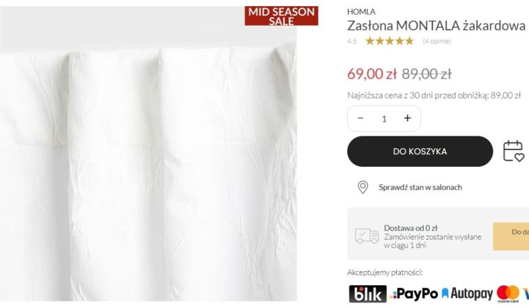 W promocji można ją kupić za 69 zł zamiast 89 zł, co czyni ją jedną z tych okazji, obok których trudno przejść obojętnie. To zasłona, która łączy w sobie prostotę i elegancję bez zbędnego przepychu, a przy tym wygląda znacznie drożej, niż sugeruje cena.