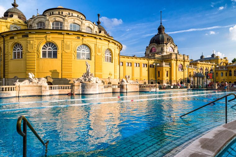 Łaźnie Széchenyi znajdują się w sercu Budapesztu, w Parku Miejskim (Városliget), po stronie Pesztu. To jedna z najbardziej rozpoznawalnych atrakcji stolicy Węgier. Sam budynek, utrzymany w stylu neobarokowym, już z zewnątrz robi ogromne wrażenie. Jasna fasada, kopuły i rozległy dziedziniec przywodzą na myśl pałac.
