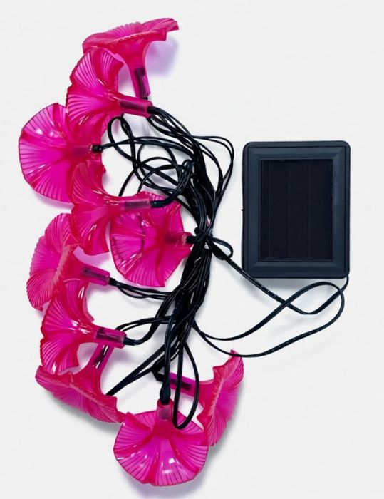 W ofercie marki znajdziesz girlandę solarną w kształcie hibiskusowych kwiatów. Intensywnie różowe, półtransparentne płatki przyciągają wzrok nawet w ciągu dnia, a po zmroku tworzą przytulny, lekko egzotyczny klimat. To propozycja idealna do ogrodu, na taras czy balkon. Girlanda ma długość 400 cm i aż 10 punktów świetlnych, dzięki czemu bez problemu owiniesz nią balustradę, pergolę albo gałęzie drzewka. Źródłem światła są lampki LED o ciepłej barwie.