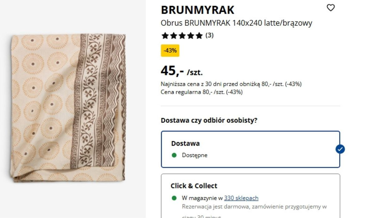 Pigmentowy nadruk sprawia, że wzór jest wyraźny i trwały. Nie blaknie szybko i zachowuje swój wygląd nawet po praniu. To ważne, jeśli obrus ma być używany regularnie, a nie tylko od czasu do czasu. Za 45 zł trudno znaleźć coś równie dobrze wykonanego. Nic dziwnego, że ten model przyciąga uwagę i szybko trafia do koszyków