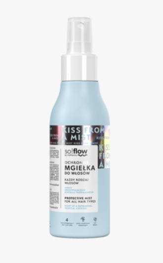 Ochronna mgiełka do włosów marki SO!FLOW BY VIS PLANTIS, dostępna w Rossmannie w cenie 27,49 zł za produkt o pojemności 150 ml, to kosmetyk, który doskonale radzi sobie z poprawą kondycji pasm i skóry głowy.