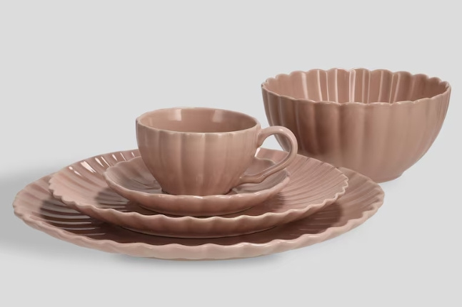 Zastawa stołowa Fiorenal dostępna w promocji Home&You obejmuje dokładnie 4 elementy, które można kupić na sztuki i skompletować według własnych potrzeb: filiżankę ze spodkiem, miskę, talerz deserowy i talerz obiadowy. Wszystkie naczynia wykonane są z kamionki w stonowanym, pudroworóżowym odcieniu. Wyróżniają się falistymi brzegami, które nadają im lekko dekoracyjny charakter.
