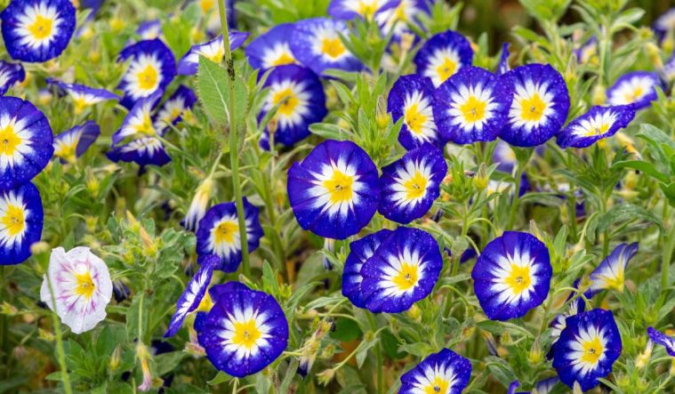 Kwitnie miesiącami bez przerwy. Powój trójbarwny wyróżnia się na tle innych rośliny jednorocznych