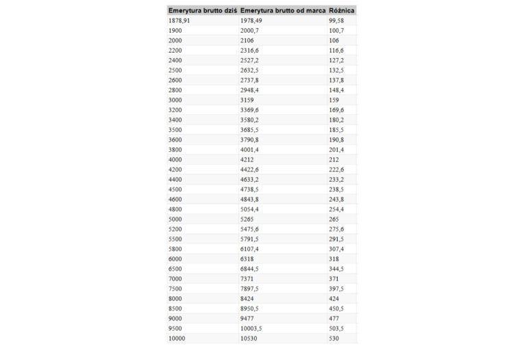 Przykładowe wyliczenia waloryzacji emerytur 2026