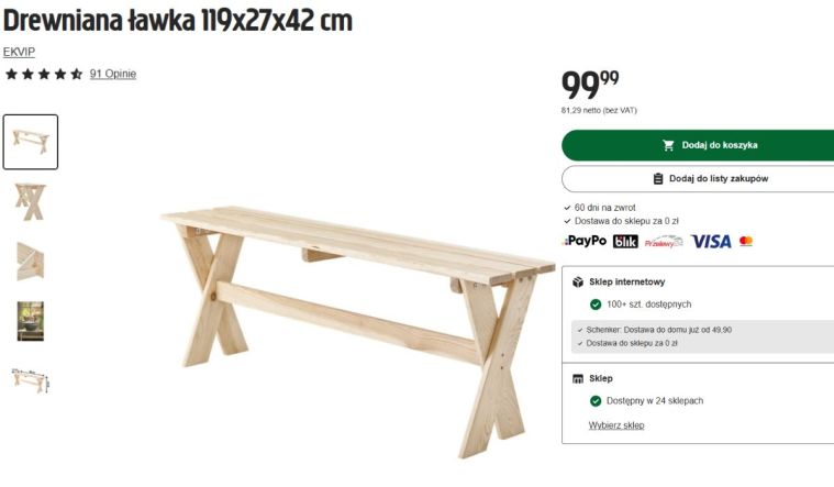 Producent podaje, że ławkę można malować, lakierować i impregnować. To świetna wiadomość, szczególnie gdy ma stanąć na tarasie albo balkonie. Surowe drewno warto zabezpieczyć, bo wtedy lepiej zniesie codzienne użytkowanie, wilgoć i zmiany pogody. Efekt może być naprawdę piękny, bo sosna ma naturalny rysunek, który po zabezpieczeniu wygląda jeszcze cieplej.