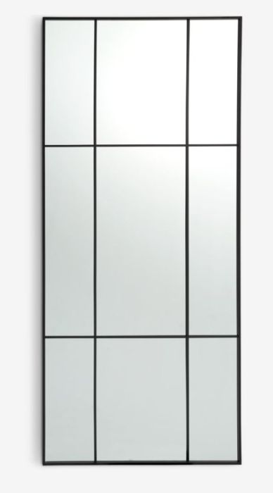 Lustro STUDSTRUP to prosty, ale efektowny model w czarnej stalowej ramie. Jego wymiary – 80 x 180 cm – sprawiają, że świetnie nadaje się zarówno do zawieszenia na ścianie, jak i postawienia przy niej. To rozwiązanie szczególnie dobrze sprawdzi się w małych mieszkaniach, gdzie liczy się każdy wizualny trik powiększający przestrzeń.