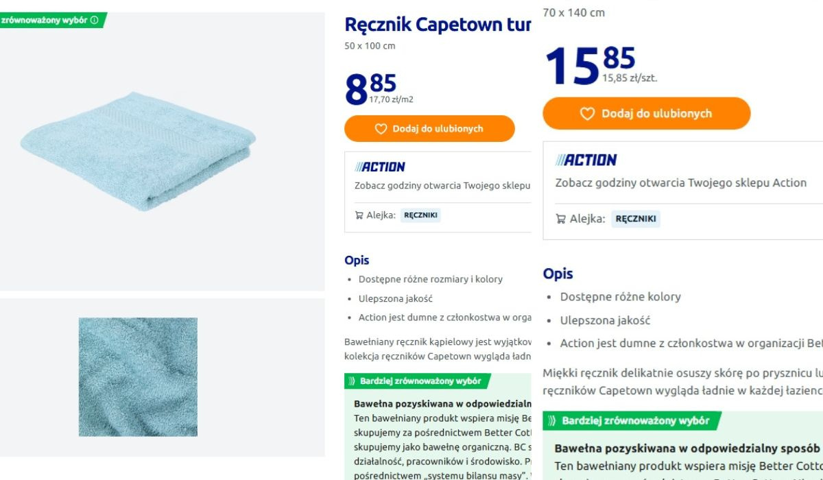 Ceny okazały się równie przyjemne, co w przypadku ręczników dla gości. Mniejsza wersja turkusowego modelu kosztowała 8,85 zł, a kąpielowa 15,85 zł.