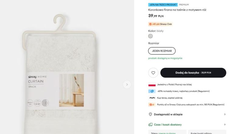 Firana premium z Sinsay kosztuje tylko 39,99 zł. W tej cenie trudno o równie dekoracyjny dodatek