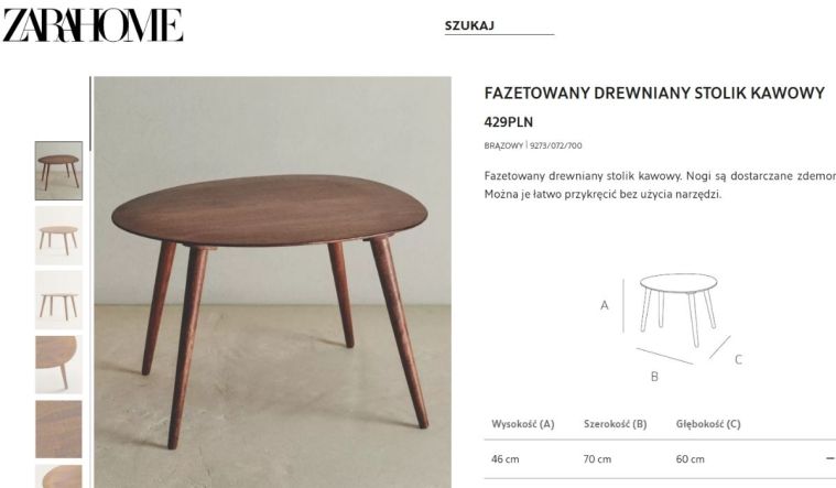 Zara kusi podobnym stolikiem kawowym. Ten sam design, a cena znacznie wyższa