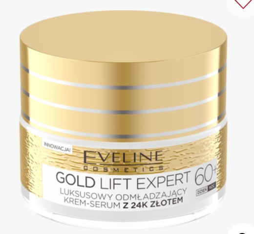 Luksusowy odmładzający krem-serum Eveline Cosmetics Gold Lift Expert 60+ dostępny w Rossmannie za jedyne 18,99 zł to produkt, który już po kilku dniach daje efekt wygładzenia i odmłodzenia dojrzałej cery. Dzięki innowacyjnej formule i silnie działającym kompleksom Anti-age, kosmetyk uelastycznia i regeneruje nawet głębokie warstwy skóry i doskonale radzi sobie ze wzmocnieniem siatki włókien, odnową warstwy lipidowej skóry, przywróceniem napięcia i jędrności oraz wypełnieniem zmarszczek.