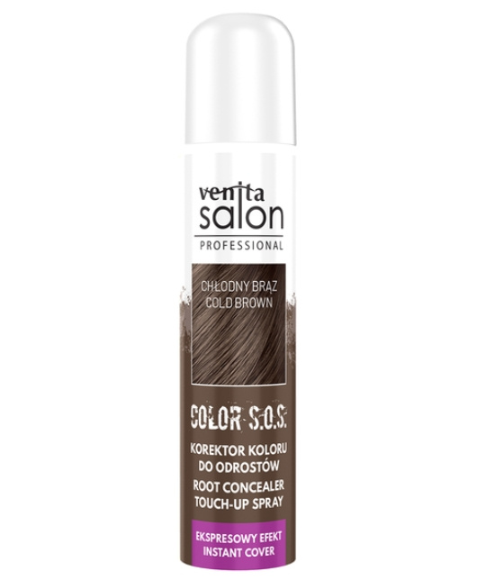 Spray koloryzujący do odrostów Venita Salon Professional Color S.O.S. RETUSZ ODROSTÓW błyskawicznie maskuje siwe włosy i widoczne u nasady odrosty bez zbędnego obciążania pasm, dlatego idealnie sprawdzi się jako alternatywa dla farbowania. Po aplikacji zapewnia odświeżenie koloru, naturalne wykończenie bez efektu przetłuszczenia włosów, a kolor trzyma się aż do pierwszego mycia szamponem.