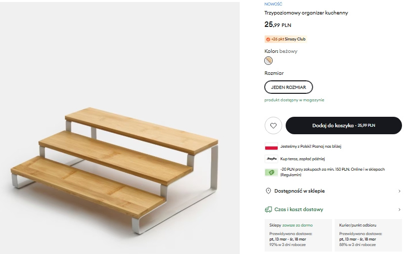 Kiedy pierwszy raz zobaczyłam bambusowy organizer do kuchni dostepny w Sinsay za 25,99 zł, wiedziałam, że zakupy nie skończą się na jednej sztuce. Gadżet prezentuje się bardzo elegancko, jest tani, a dodatkowo rozwiązuje niemal wszystkie problemy w małej przestrzeni.