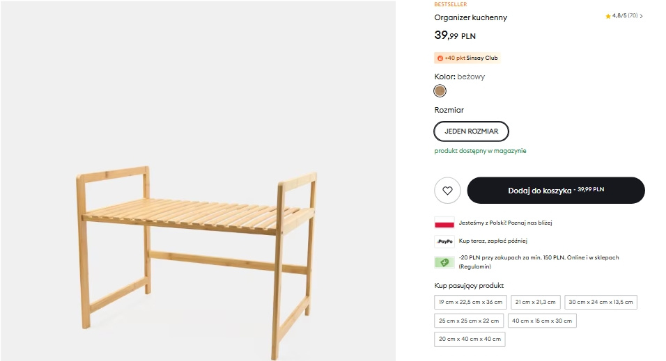 Prawdziwym wybawieniem w przypadku mojej małej kuchni w bloku okazał się właśnie ten bambusowy organizer dostępny w Sinsay po 39,99 zł za sztukę. Z racji, że cena była naprawdę korzystna, postanowiłam nie zwlekać i domówić jeszcze kilka sztuk.