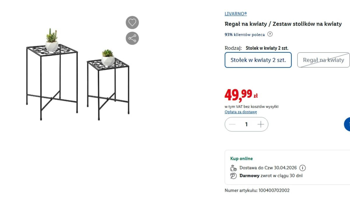 Cena to 49,99 zł za cały zestaw dwóch sztuk. W praktyce wychodzi około 25 zł za jeden i szczerze mówiąc, za taki efekt to naprawdę okazja. Widziałam podobne rzeczy w innych sklepach i ceny były nawet dwa razy wyższe. U mnie sprawdzają się idealnie. Pelargonie wyglądają na nich pięknie, a ja w końcu mam gdzie postawić kawę albo książkę. I właśnie o taki efekt mi chodziło.