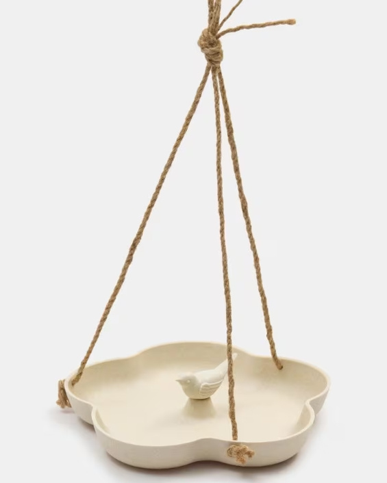 W ofercie działu „Dom” w Sinsay pojawiło się poidełko dla ptaków w cenie 15,99 zł, które zwraca uwagę nie tylko wyglądem, ale również funkcjonalnością. Produkt o wymiarach 23 cm × 23 cm × 33 cm został wykonany z tworzywa sztucznego z dodatkiem bambusa i juty. Ma gładką powierzchnię, jasnobeżowy kolor i prosty, kwiatowy kształt. W centralnym punkcie umieszczono dekoracyjnego ptaszka.