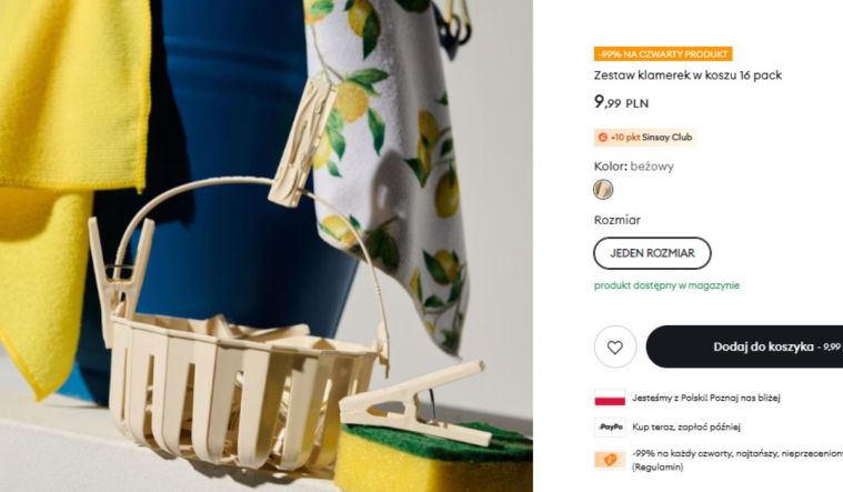 Podobnie działa wiaderko za 12,99 zł, świetne do drobnych porządków. Nie zapomnijcie też o klamerkach, jeżeli będziecie używać suszarki na balkonie – zestaw 16 sztuk z koszykiem kupicie za 9,99 zł.