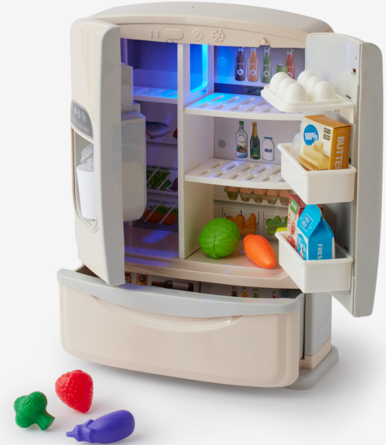 Dostępne są również zabawki „domowe”: lodówka z produktami (90 zł) czy wózek zakupowy z akcesoriami (45 zł). To świetny sposób na zabawę w sklep, organizację „domowego gospodarstwa” i naśladowanie dorosłych — a dzieci naprawdę to uwielbiają.