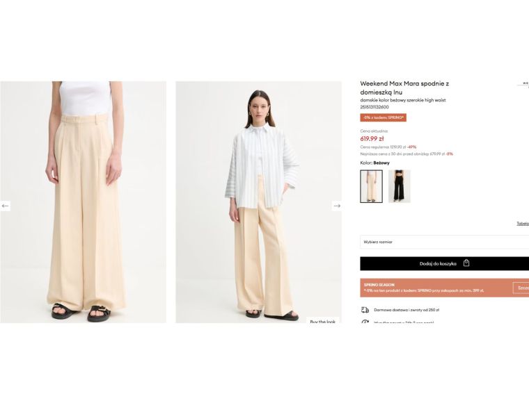 Dla porównania, podobne spodnie z kolekcji Weekend Max Mara kosztują ponad 600 zł, a regularna cena przekracza nawet 1200 zł. Mają podobny krój, wysoki stan i szeroką nogawkę, czyli dokładnie to, co widzimy w tańszej wersji z Lidla.