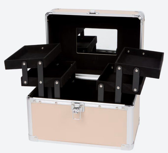 Rozkładane szuflady umożliwiają wygodne posegregowanie kosmetyków, a wbudowane lusterko sprawia, że można używać go także jako mobilnej toaletki. Solidna konstrukcja i poręczny uchwyt pozwalają łatwo przenosić kuferek między łazienką, sypialnią czy zabrać go w podróż. To rozwiązanie szczególnie dobrze sprawdzi się u osób, które mają większą kolekcję kosmetyków i chcą mieć wszystko w jednym miejscu.