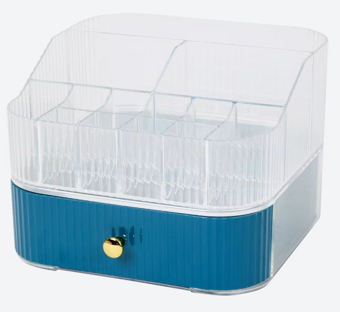 Kolejną propozycją jest przezroczysty organizer na przybory do makijażu w cenie 17,95 zł. Wyposażony w jedną szufladę i aż 13 przegródek, pozwala wygodnie posegregować pędzle, kredki, szminki i drobne kosmetyki. Przezroczysta konstrukcja ułatwia szybkie znalezienie potrzebnego produktu bez otwierania każdej przegródki.