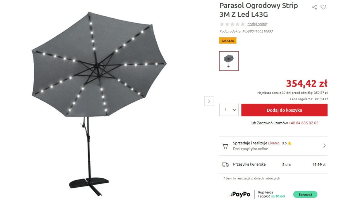 Świecący stolik z Action to hit, ale ten solarny parasol z Black Red White rozwala system. Wygląda jak z modnego katalogu wnętrzarskiego