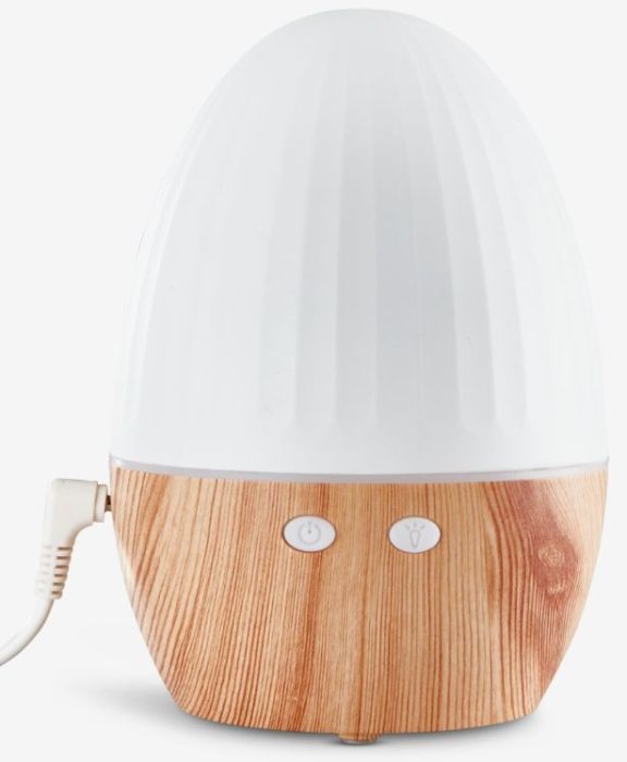 Nawilżacz HANNES to przykład urządzenia, które bez trudu wpisuje się w nowoczesne wnętrza. Jego kompaktowy rozmiar – 11 × 16 cm – sprawia, że zmieści się na biurku, stoliku nocnym czy półce w salonie, nie zajmując przy tym dużo miejsca. Połączenie jasnego, mlecznego klosza z podstawą w kolorze drewna nadaje mu ciepły, naturalny wygląd, dzięki czemu bardziej przypomina designerską lampkę niż typowy sprzęt AGD. Dodatkowym atutem jest delikatne oświetlenie LED, które buduje przyjemny nastrój, szczególnie wieczorem.