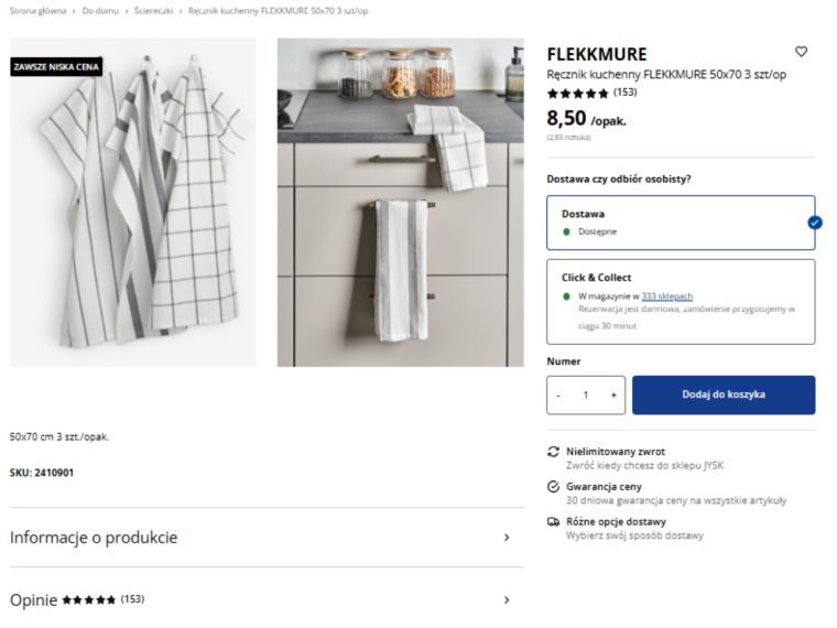 Cena? Zestaw trzech sztuk kosztuje 8,50 zł, czyli jedna ściereczka wychodzi tylko 2,83 zł. W praktyce oznacza to, że można zrobić zapas bez większego zastanowienia i mieć zawsze czyste tekstylia pod ręką.