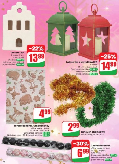 Na półkach przeceniono także torby ozdobne Jumbo Disney – duże, kolorowe i idealne dla fanów kultowych bohaterów. Teraz kupisz je za 4,99 zł. Dodatkowo Dino oferuje klasyczne, połyskujące łańcuchy choinkowe za 2,99 zł. To jedna z najtańszych ozdób, a potrafi odmienić wygląd nawet bardzo skromnej choinki.