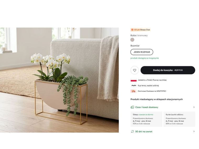 Czasem wystarczy jeden detal, by całe wnętrze wyglądało zupełnie inaczej. Z nadchodzącą wiosną, chcemy wprowadzić do swoich domów świeżość i nową energię. Doskonałym rozwiązaniem będzie kwietnik w stylu glamour, który możemy wypełnić pięknymi, żywymi i efektownymi kwiatami. Kwietnik z półokrągłą osłoną na stelażu, który pojawił się w ofercie Sinsay ma prostą, ale bardzo efektowną konstrukcję. Kremowa osłona połączona ze złotymi elementami tworzy elegancki duet, który od razu przyciąga wzrok.